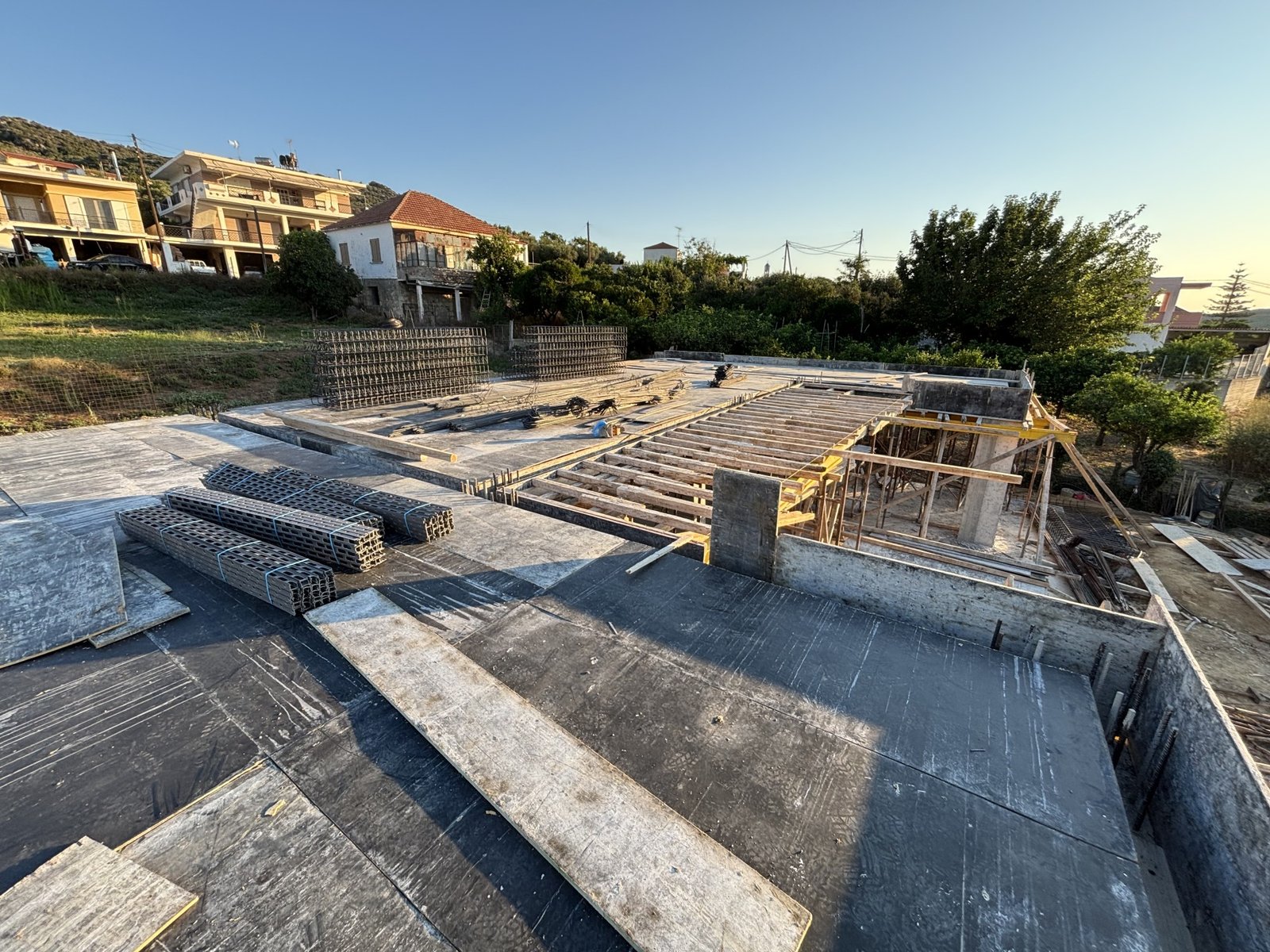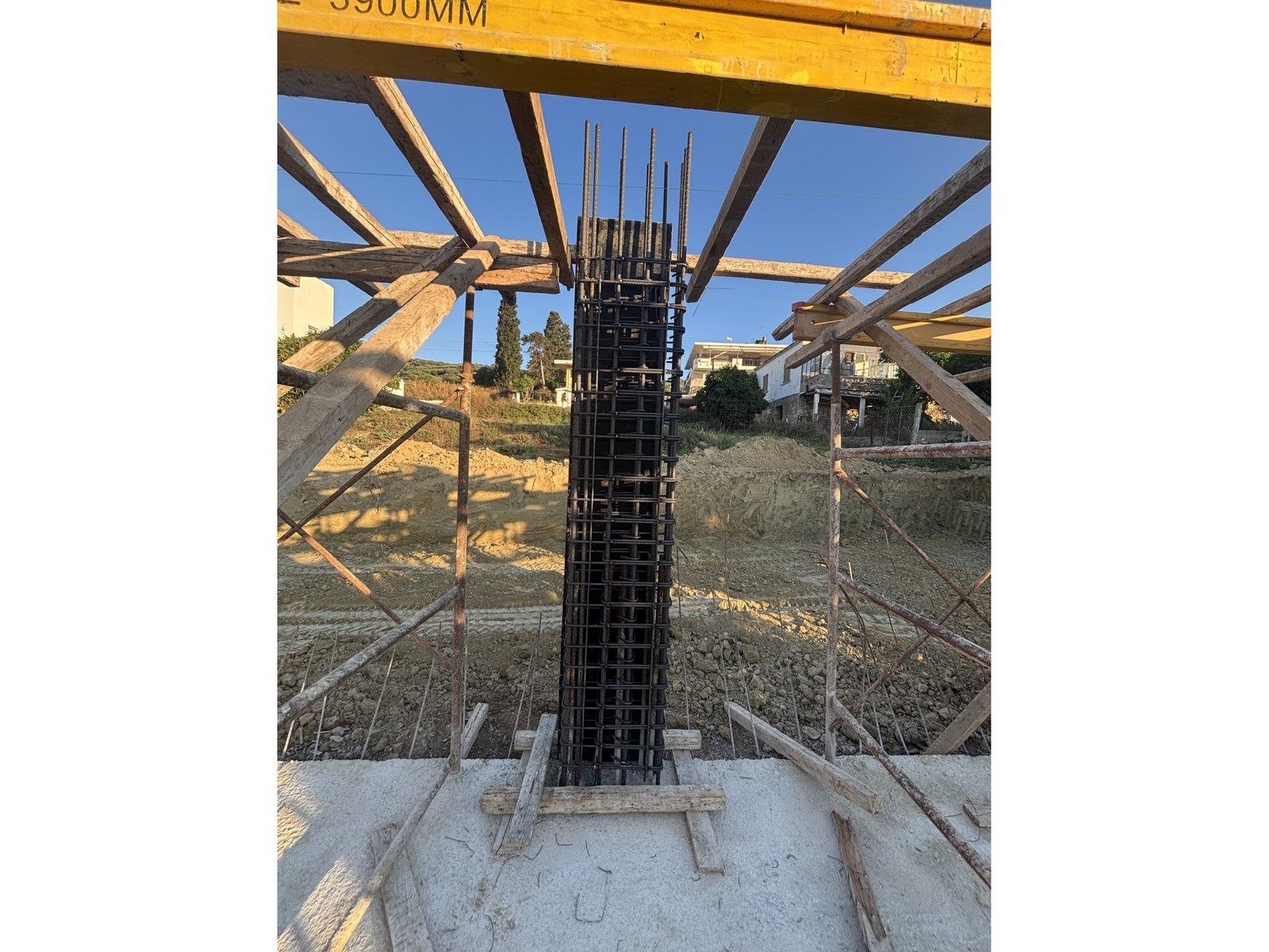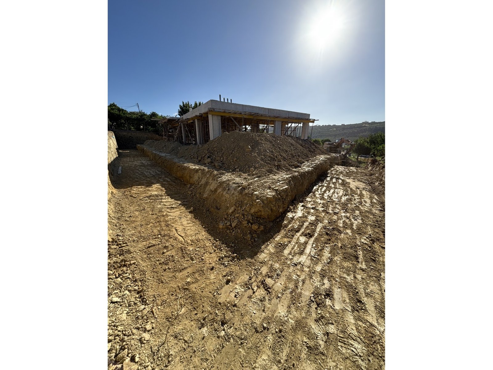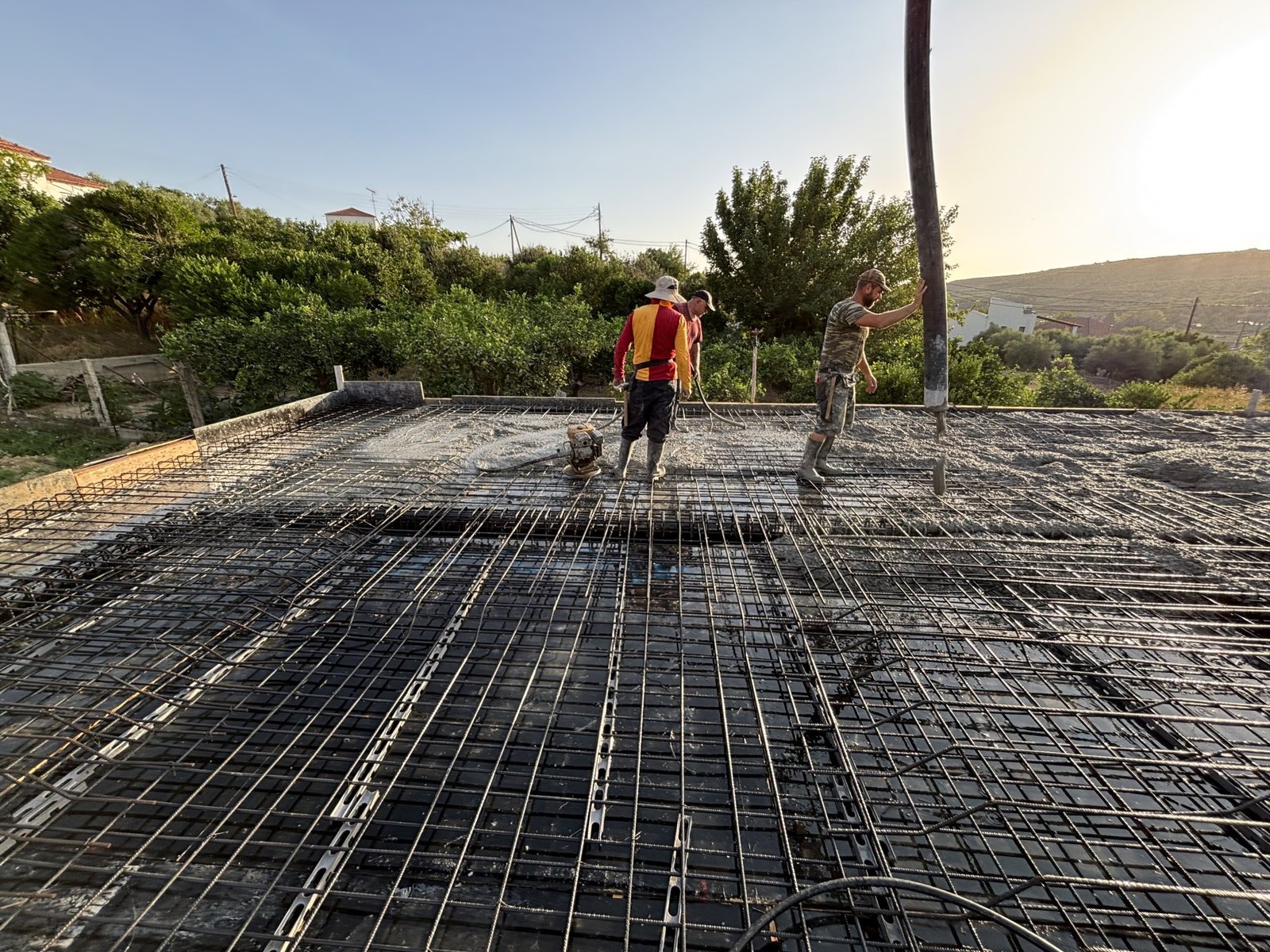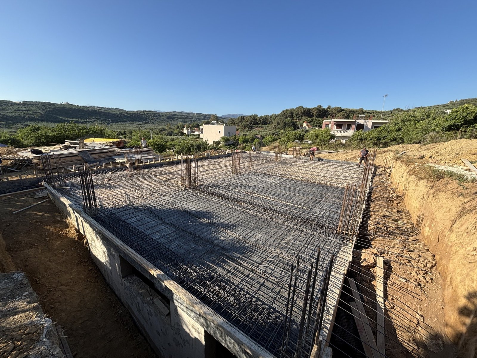 Discover a residential project currently under construction in the tranquil area of Spilia. The accompanying 3D model offers a detailed look at the villa’s final design and layout and the image carousel provides an ongoing visual record of the construction phases, illustrating the process and the materials being utilized to bring this design to the final state.